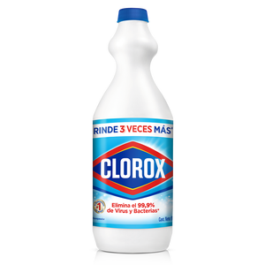 AgregaVierte 240 ml de Clorox® Blanqueador Triple Acción Original en un balde de 5 L de agua.