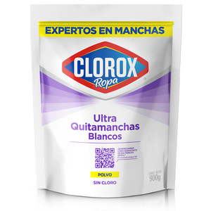 Como alternativa al blanqueador, puedes utilizar un aditivo para el lavado como Clorox® Ropa Quitamanchas Blancos Intensos o Clorox® Ropa Ultra Quitamanchas Blancos en Polvo.